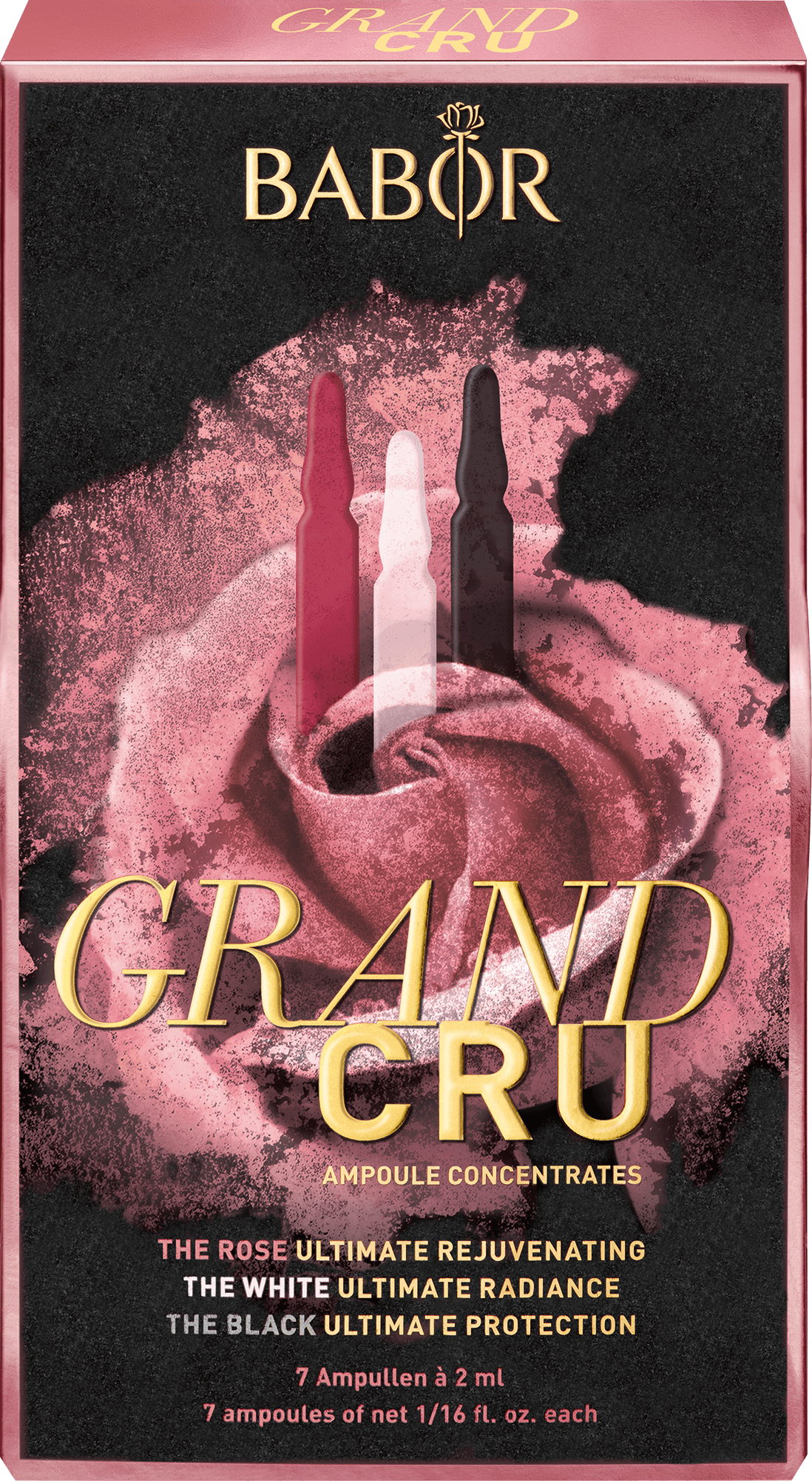 Met de Grand Cru Edition heeft BABOR een exclusieve en buitengewone ampullenkuur gecreëerd voor een bijzonder veeleisende huid. Drie nauwkeurig op elkaar afgestemde Ampoule Concentrates met exclusieve rozenextracten, vormen een zeer werkzame en alomvattende anti-aging belevenis.